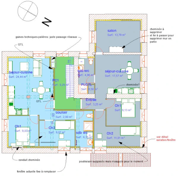 - plans de niveaux, avec vue classique vers le bas mais également la possibilité d'avoir des plans avec vue vers le haut, ce qui est intéressant lorsqu'il existe des structures particulères telles des voûtes