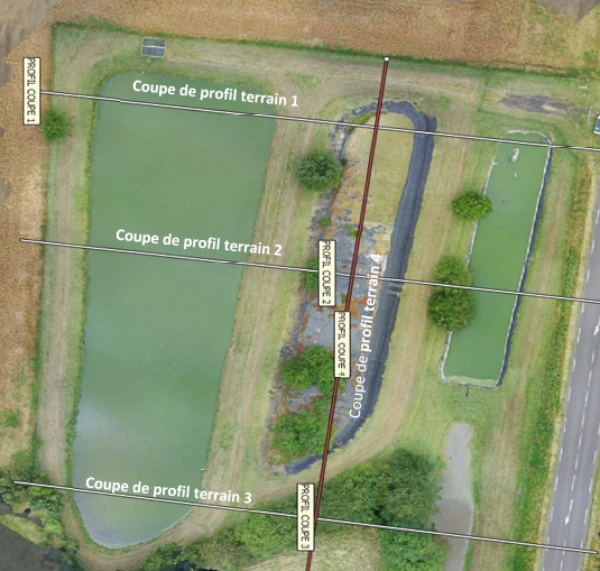 - coupes à l'échelle montrant les variations d'altimétrie, les bâtiments existants, les arbres